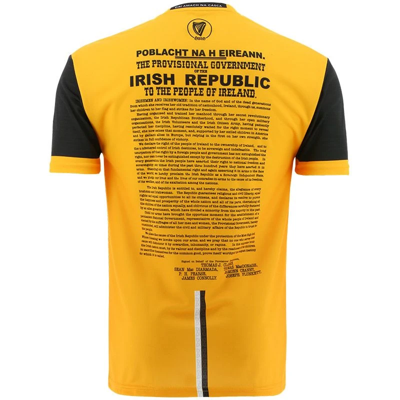The Antrim 1916 jersey is a unique Irish heritage gift. The jersey is made from high performance Koolite fabric that transports moisture away from the skin. The jersey features a reproduction of the 1916 Proclamation, water marked harp detail, an embroidered harp and “Éirà Amach na Casca” text across the back of the neck.