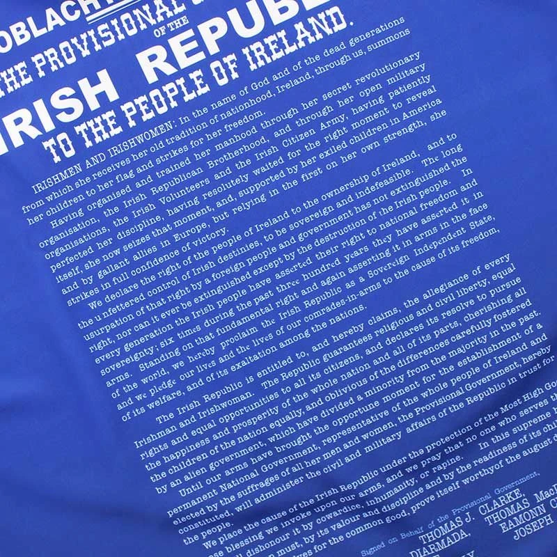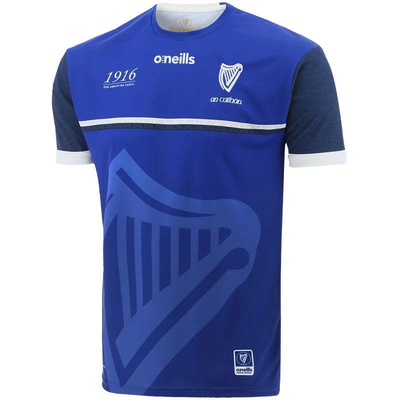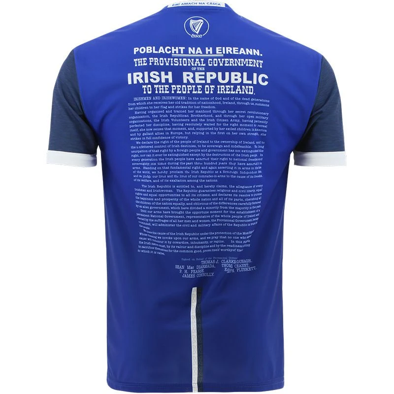 The Cavan 1916 jersey is a unique Irish heritage gift. The jersey is made from high performance Koolite fabric that transports moisture away from the skin. The jersey features a reproduction of the 1916 Proclamation, water marked harp detail, an embroidered harp and “Éirà Amach na Casca” text across the back of the neck.
