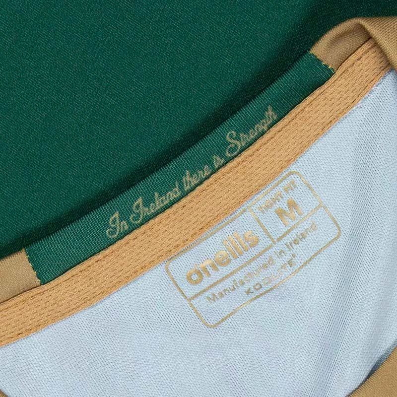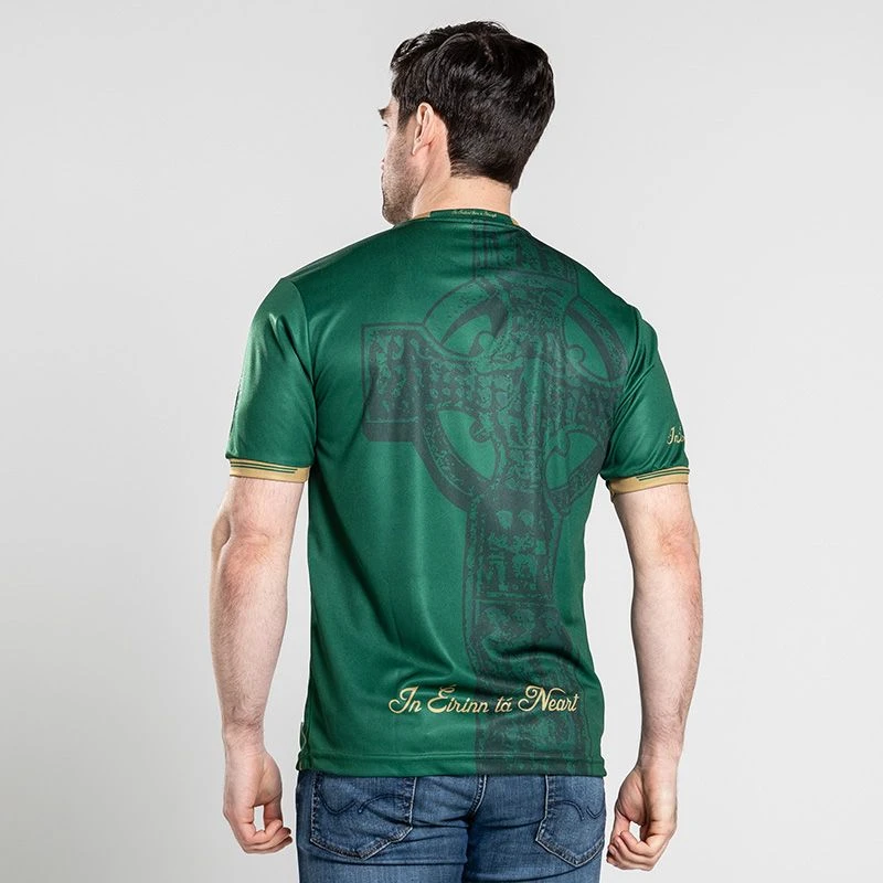 The exclusive O’Neills Celtic Cross Jersey symbolises the patriotism and values of Ireland. Showcasing rich green, white and gold colours. The subtle gold embroidered Celtic Cross sits proudly on the chest for the world to see, with a sophisticated watermark design on the back of the jersey. The shirt is completed with the lettering ‘In Éirinn tá Neart’ – In Ireland There Is Strength. Part of the O’Neills Irish Pride and Heritage Collection, Ireland’s original and oldest sportswear company since 1918.
