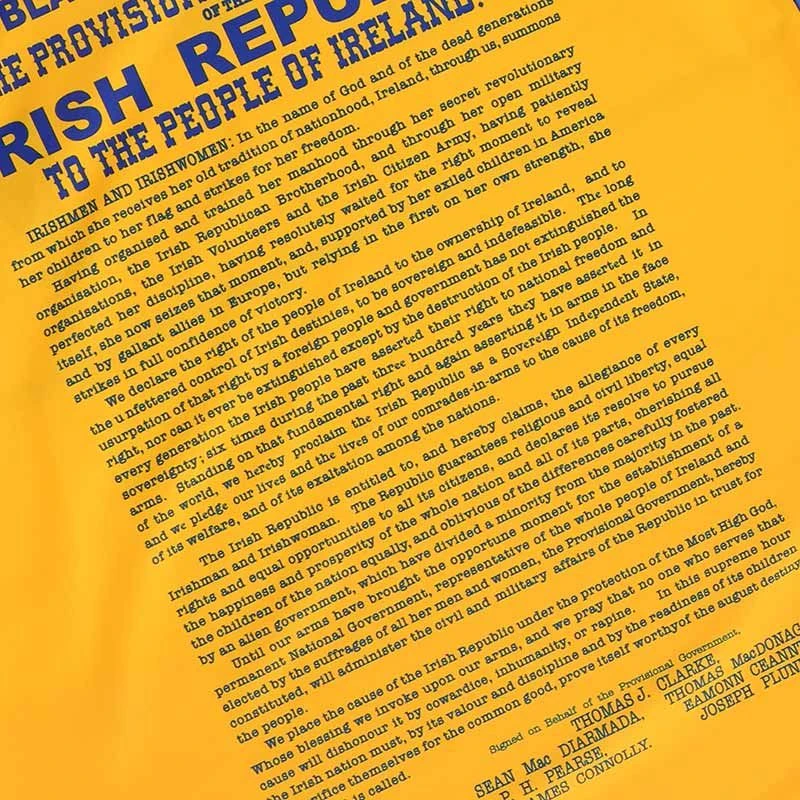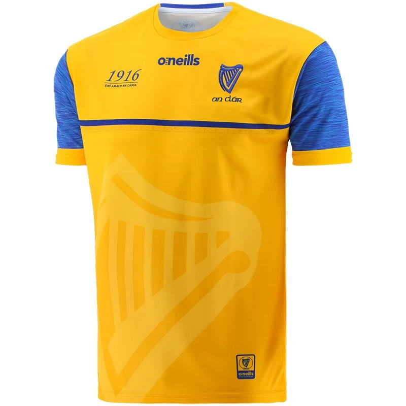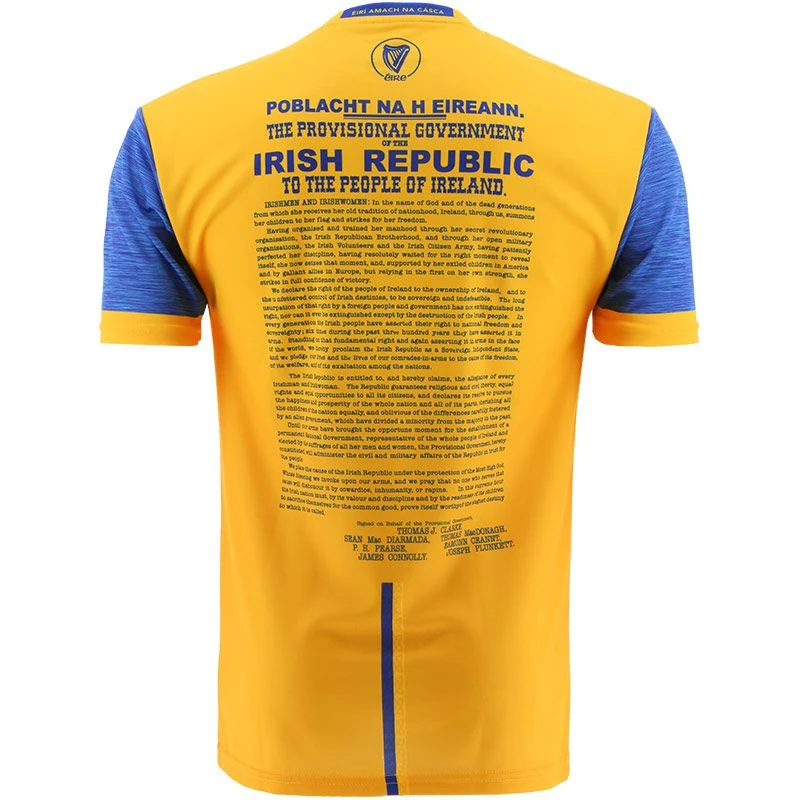 The Clare 1916 jersey is a unique Irish heritage gift. The jersey is made from high performance Koolite fabric that transports moisture away from the skin. The jersey features a reproduction of the 1916 Proclamation, water marked harp detail, an embroidered harp and “Éirà Amach na Casca” text across the back of the neck.
