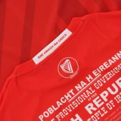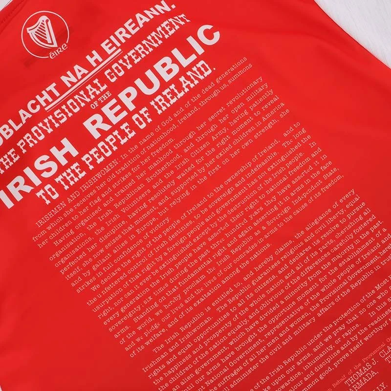 The Cork 1916 jersey is a unique Irish heritage gift. The jersey is made from high performance Koolite fabric that transports moisture away from the skin. The jersey features a reproduction of the 1916 Proclamation, water marked harp detail, an embroidered harp and “Éirà Amach na Casca” text across the back of the neck.