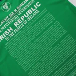 The Fermanagh 1916 jersey is a unique Irish heritage gift. The jersey is made from high performance Koolite fabric that transports moisture away from the skin. The jersey features a reproduction of the 1916 Proclamation, water marked harp detail, an embroidered harp and “Éirà Amach na Casca” text across the back of the neck.