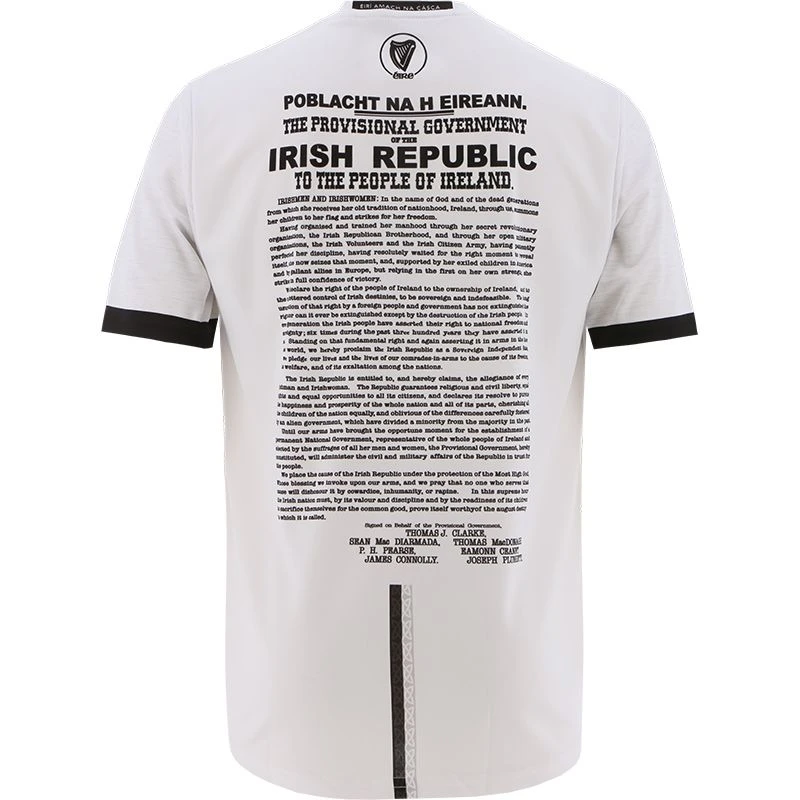 The Kildare 1916 jersey is a unique Irish heritage gift. The jersey is made from high performance Koolite fabric that transports moisture away from the skin. The jersey features a reproduction of the 1916 Proclamation, water marked harp detail, an embroidered harp and “Éirà Amach na Casca” text across the back of the neck.