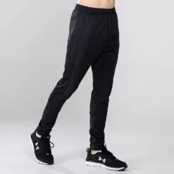 Train or lounge in comfort with the Cody Men’s Hybrid Skinny Tracksuit Bottoms. Equipped with moisture-wicking properties, these tracksuit bottoms work to move sweat away from your body, keeping you cool, dry and comfortable all day long. The elasticated waistband with drawcord provides an adjustable fit, complete with two zip pockets to keep your essentials safe. Ideal for training or everyday wear.