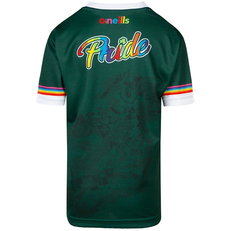 Proud to love, Proud to be Irish, Proud to be you. Wear your pride with the Kids’ Pride Ireland Rainbow jersey, featuring traditional Irish map of crests in stand-out rainbow colours.